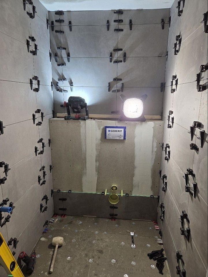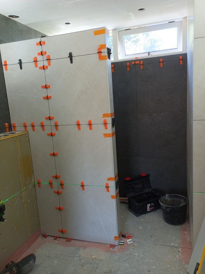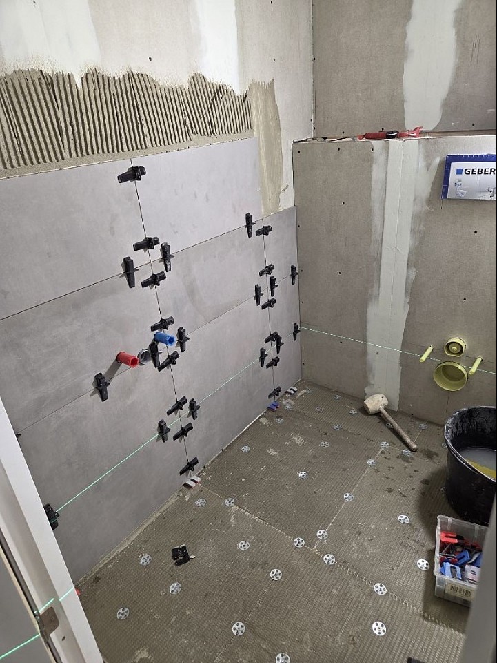 Dag 1: Ondergrond controleren, egaliseren/voorstrijken en start tegelen.