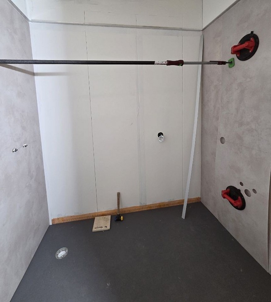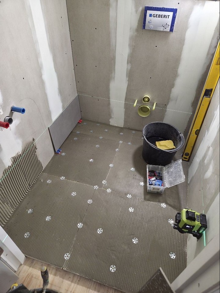 Dit is de belangrijkste stap. Breng vóór het tegelen een waterdicht systeem aan op muren en vloeren in de natte cellen (douchehoek, rond bad).