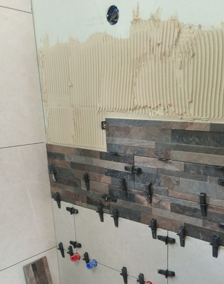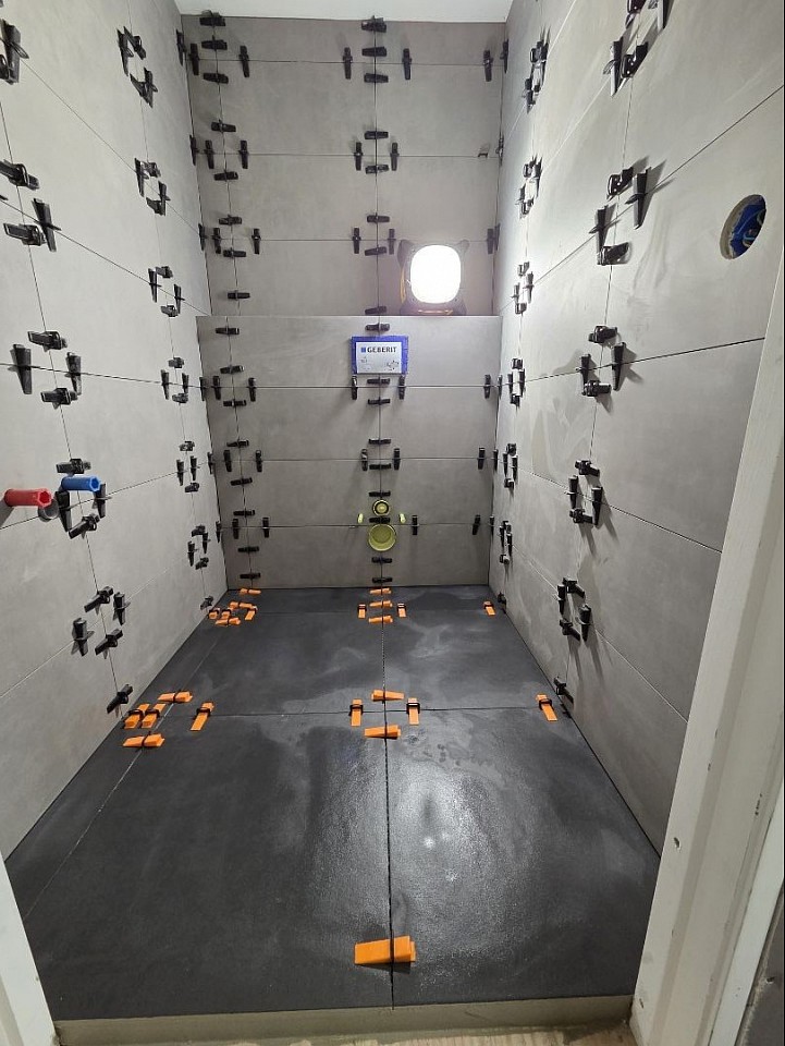 Gebruik flexibele tegellijm (geschikt voor vochtige ruimtes). Dit voorkomt dat tegels loslaten door de werking van het huis of temperatuurverschillen, wat vaak lekkages veroorzaakt.